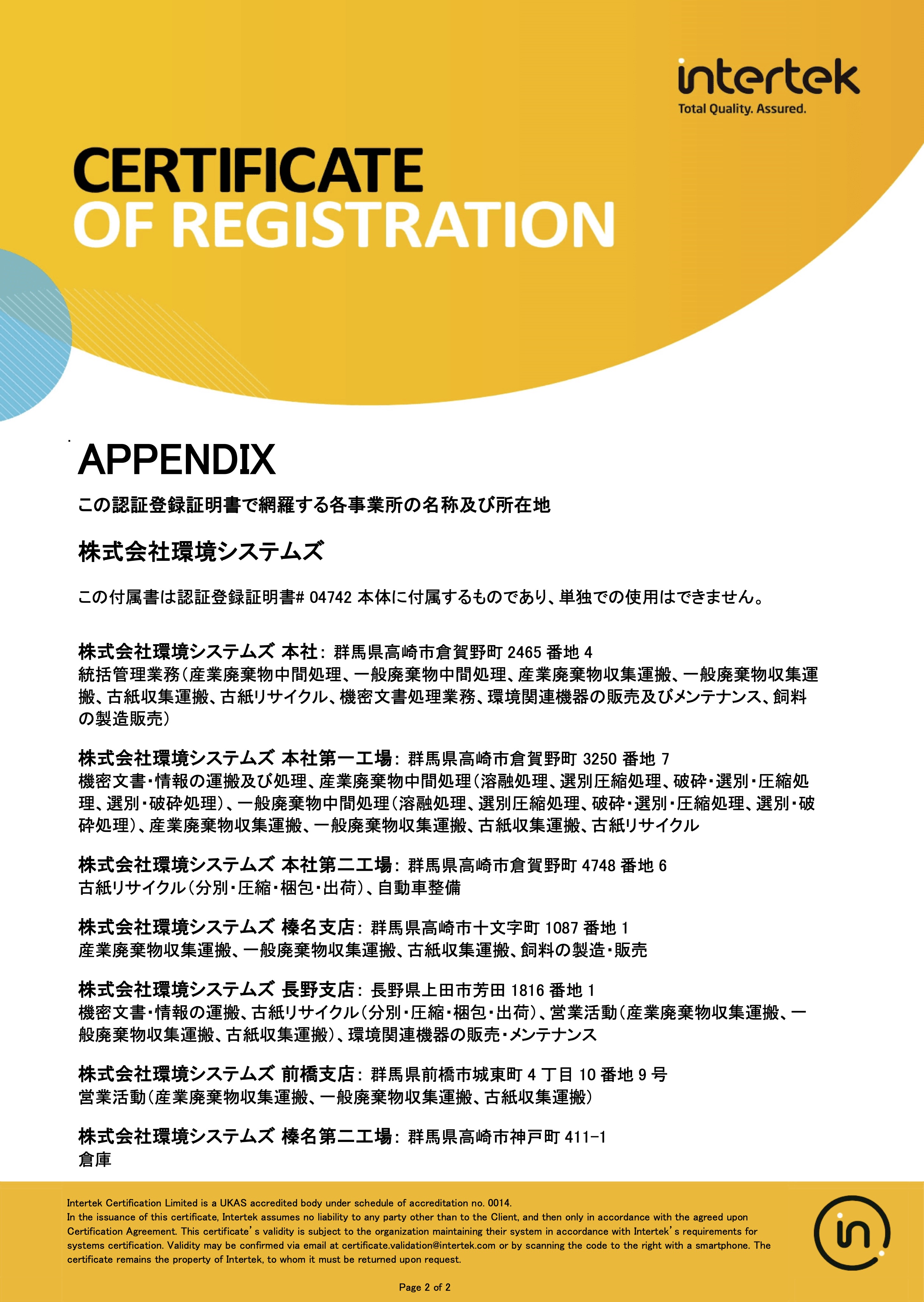 ■環境システムズでは国際標準化機構(ISO)が環境マネジメントシステムの構築・運用に必要な項目を規格化したISO14001を2001年9月に取得しました。
