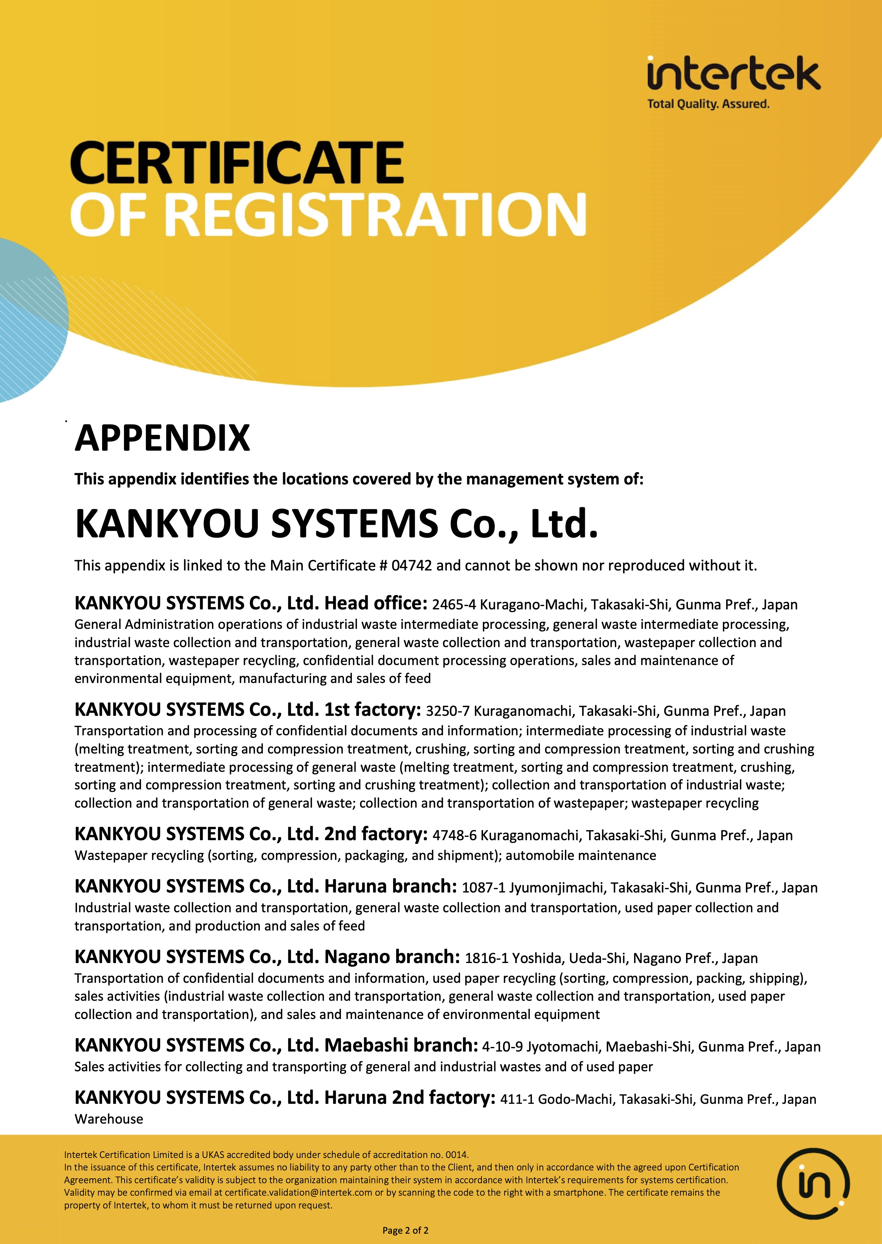 さらに、2004年版規格への改定にも対応し、今後もISO14001の活動を通して循環型社会の構築に貢献いたします。