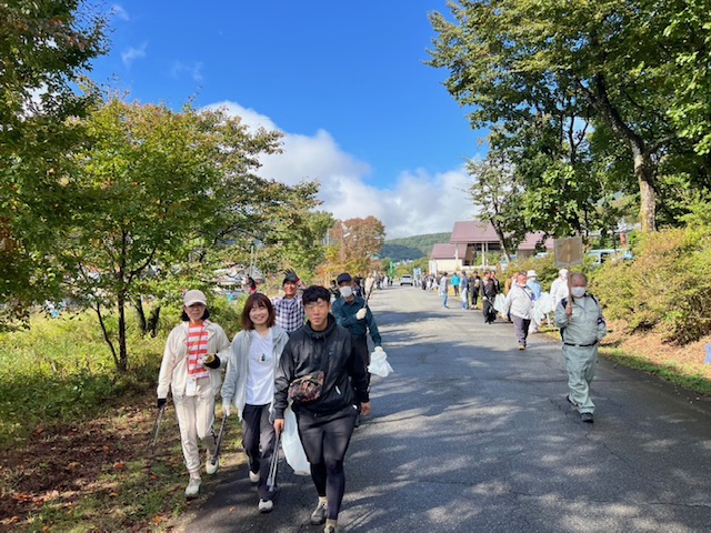 当日は秋晴れのなか、3班に分かれて道路沿いのポイ捨て空き缶やペットボトル、たばこの吸い殻などの廃棄物を回収しました。